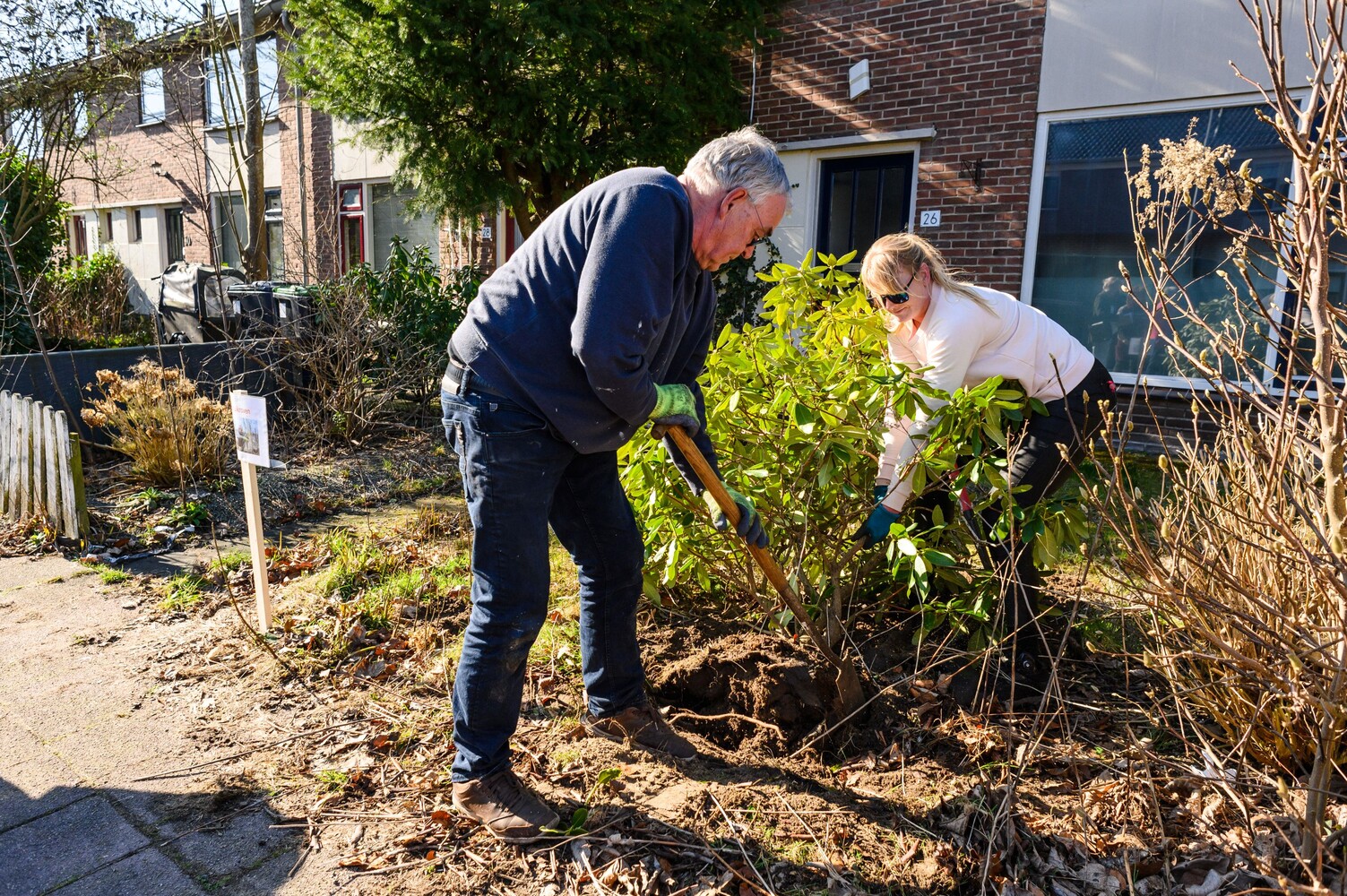 De sfeer was positief en gezellig. Bewoners hielpen elkaar bij het uitgraven van planten en gaven tips over hoe je ze het beste kunt verplaatsen en opnieuw kunt planten.